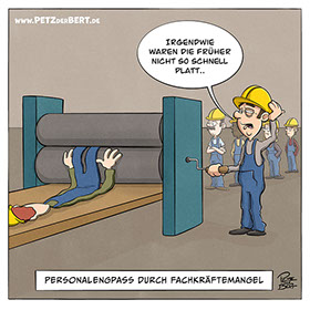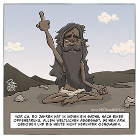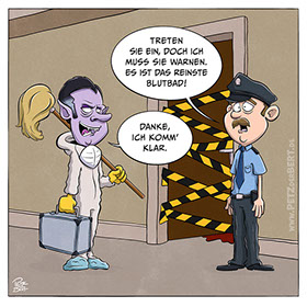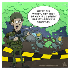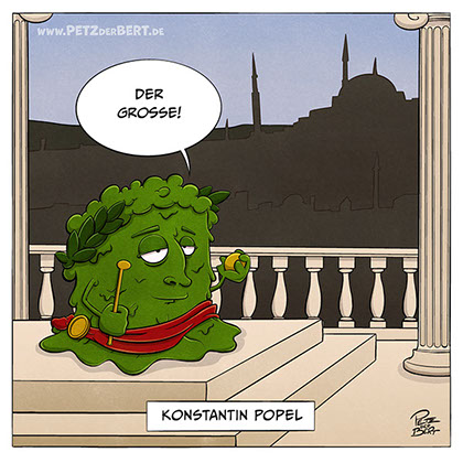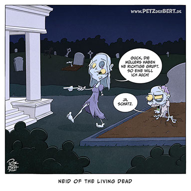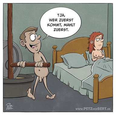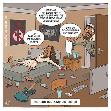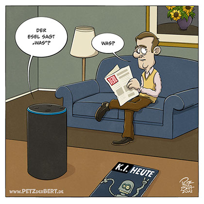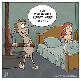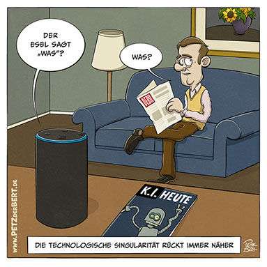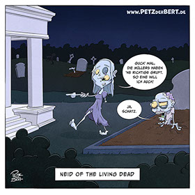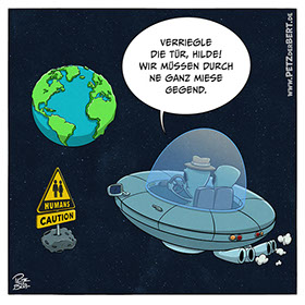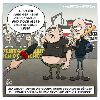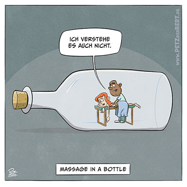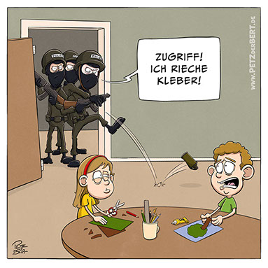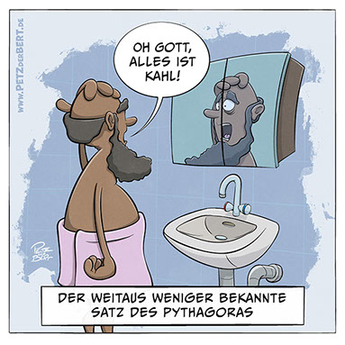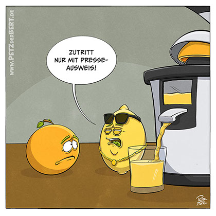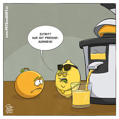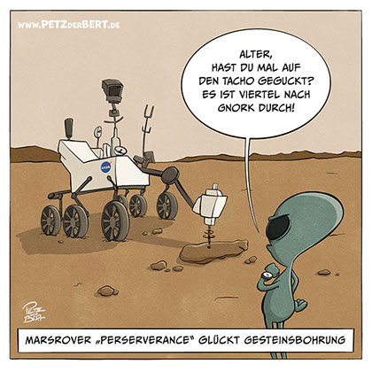 Der selbsternannte Hobby-Cartoonist Patrick Schombert wurde 1982 in Essen geboren, zog dann aber alsbald in die weite Welt, um in Dortmund als Mediengestalter Fuß zu fassen. Seit ca. 2020 veröffentlicht er, unter dem Namen PetzDerBert, seine albernen Cartoons mehr oder weniger regelmäßig in den „sozialen“ Medien, war u.a. im Eulenspiegel vertreten und gehörte beim Deutschen Karikaturenpreis 2021 zu den drei Nominierten für den Preis zum Newcomer des Jahres. (Ein herzlicher Glückwunsch geht an dieser Stelle an Annika Frank!). Üblicherweise spricht er von sich nur sehr selten in der dritten Person.
